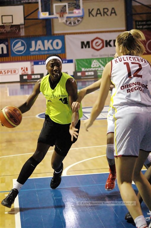 Początek pierwszej kwarty w wykonaniu polskiego zespołu do złudzenia przypominał wczorajsze rozpoczęcie meczu z zespołem Good Angels Koszyce. Bydgoszczanki traciły 6 punktów, ale po czasie wziętym przez trenera Herkta nastąpiła znaczna poprawa gry w ataku polskiego zespołu. Dzięki czemu pierwsza kwarta została wygrana 18:15. Druga kwarta to już znacznie bardziej przemyślana gra Polek, dzięki czemu po połowie spotkania na tablicy widniał wynik 32:25. Po powrocie z szatni Rosjanki wyraźnie obudziły się i rozpoczęły agresywne wjazdy pod polski kosz odrabiając straty by na minutę przed końcem kwarty był remis po 43. Na dwie minuty przed końcem meczu bydgoszczanki odrobiły straty i wyszły na prowadzenie, dzięki skutecznemu rzutowi za 3 punkty w wykonaniu Elżbiety Mowlik Artego ostatecznie wygrało 56:51.