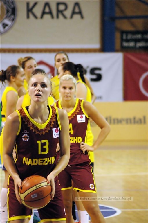 Pewne pierwszego miejsca w grupie koszyczanki fatalnie rozpoczęły spotkanie od serii błędów popełnionych zarówno w obronie jak i ataku, efektem czego zmotywowana dwiema przegranymi Nadezhda rozwinęła skrzydła i po pierwszej kwarcie było 12:23. Na początku drugiej kwarty sfrustrowanemu trenerowi Good Angels Koszyce - Marosowi Kovacikowi został odgwizdany faul techniczny, niemniej jego podopieczne powoli zaczęły wzmacniać swoją grę i odrabiać straty. W czym pomocne były także koszykarki Nadezhdy, które zaczęły popełniać coraz więcej błędów. W połowie kwarty Tatyana Burik popełniła faul niesportowy. Koszyczanki wygrały 2 kwartę 4 punktami i wyrównana walka rozpoczęła się po powrocie z przerwy. Na 2 minuty przed końcem 3 kwarty koszyczankom udało się odrobić starty, zremisować a następnie zakończyć kwartę z 1 punktowym prowadzeniem (58:57). Mecz był bardzo zacięty, faule sypały się po jednej jak i drugiej stronie. Na 4 minuty przed końcem znowu był remis po 68. Celny rzut za 3 punkty Bar ponownie dał prowadzenie Słowaczkom. Między innymi dzięki celnym 3 rzutom wolnym i efektownemu przechwytowi Magdaleny Ziętary ostatecznie to koszyczanki cieszyły się ze zwycięstwa.